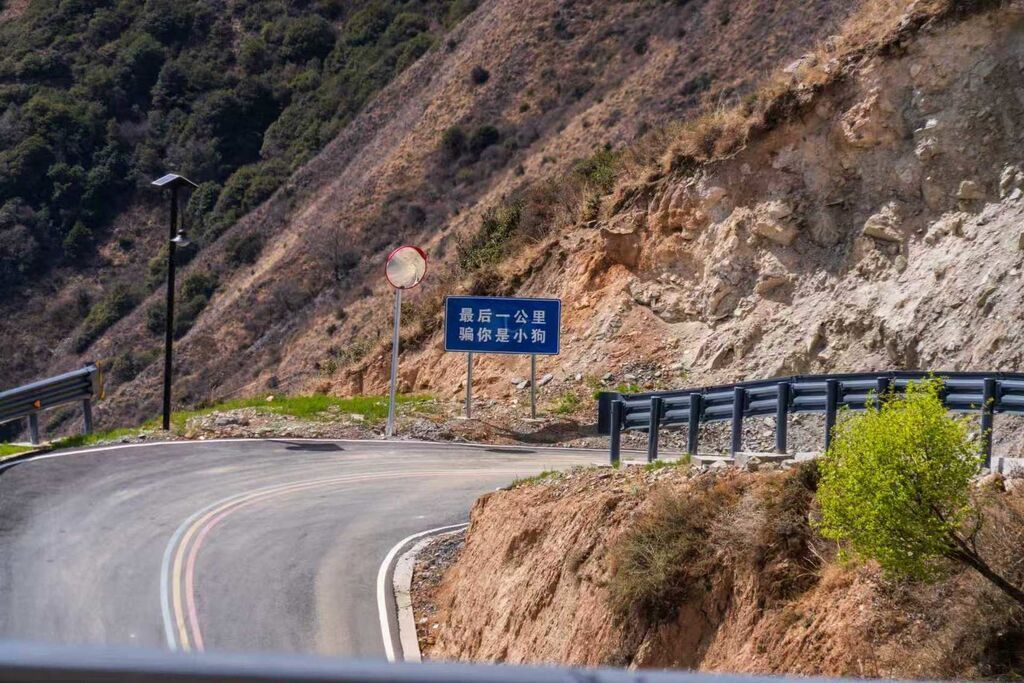 “最后一公里,骗你是小狗”路牌。 金川县融媒体中心供图