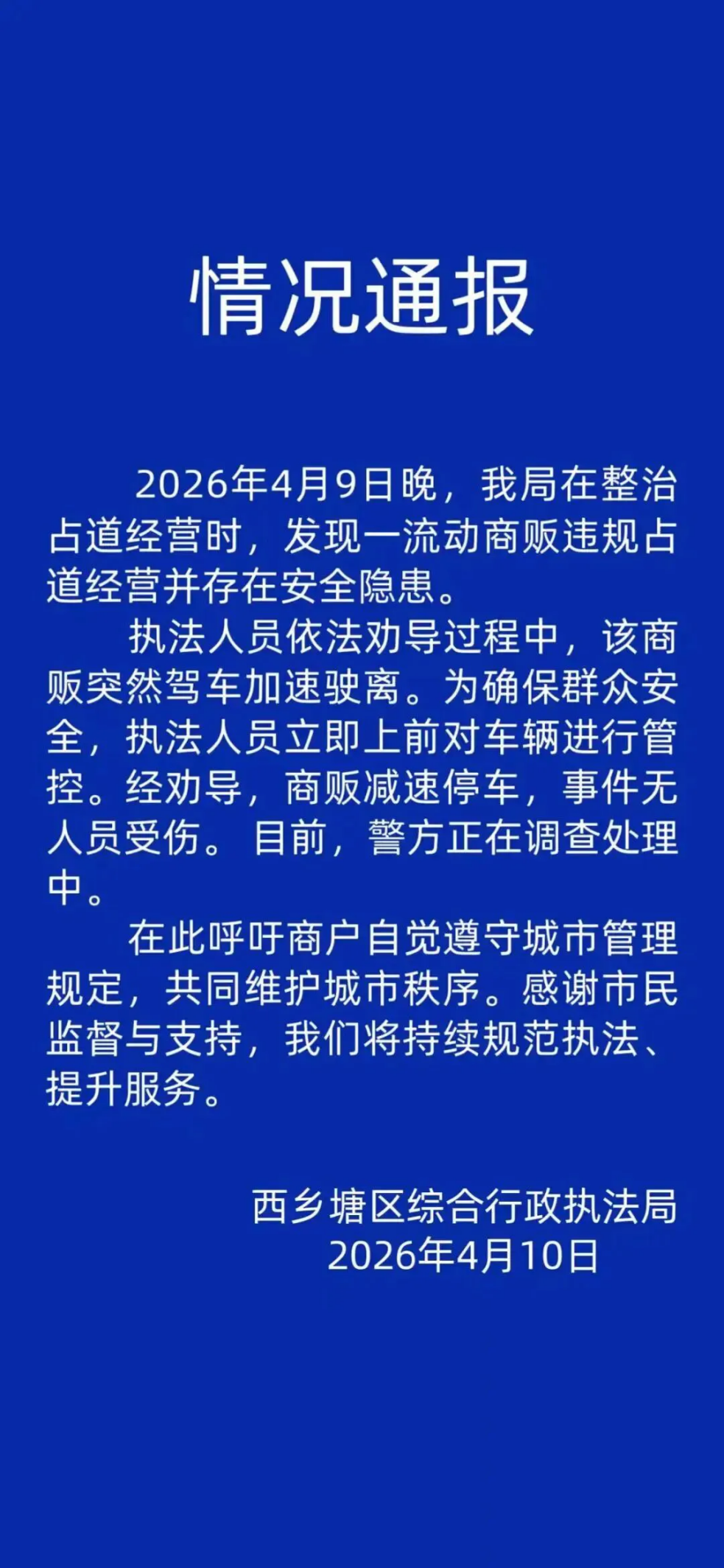 ·广西南宁通报“城管爬上摊贩三轮车被带行两三百米”。