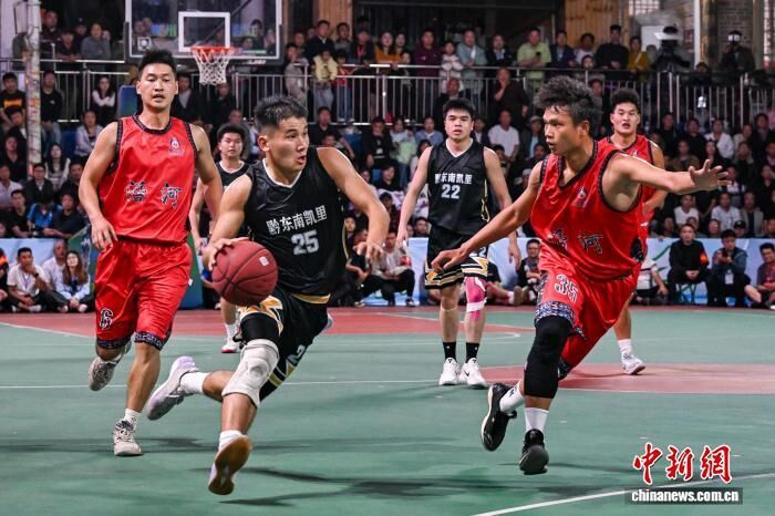 中新网贵州台江4月12日电 (记者 瞿宏伦)贵州省第四届“美丽乡村”篮球联赛(贵州“村BA”)总决赛11日晚在贵州省台江县台盘村打响,沿河土家族自治县代表队与凯里市代表队会师总决赛,展开巅峰对决。最终凯里市代表队凭借第三节强势发力,末节稳扎稳打成功拿下冠军。
