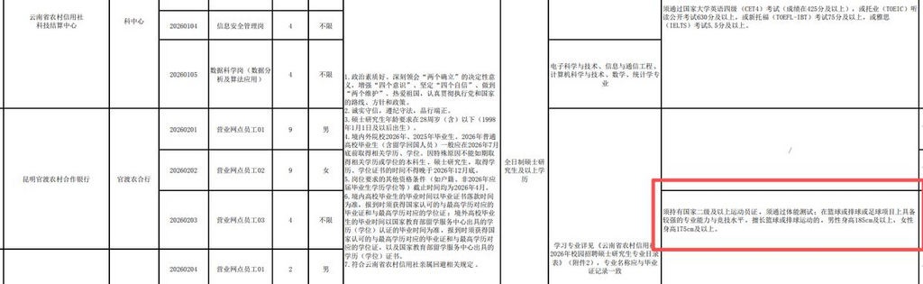 ·云南农信社回应招聘被质疑萝卜岗:取消“运动员”及身高等要求。