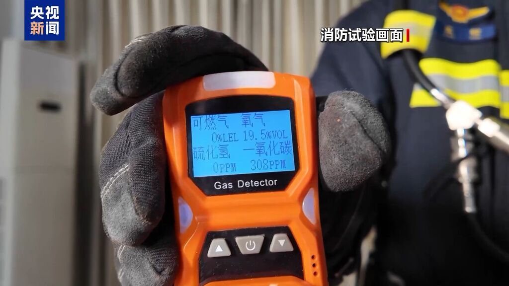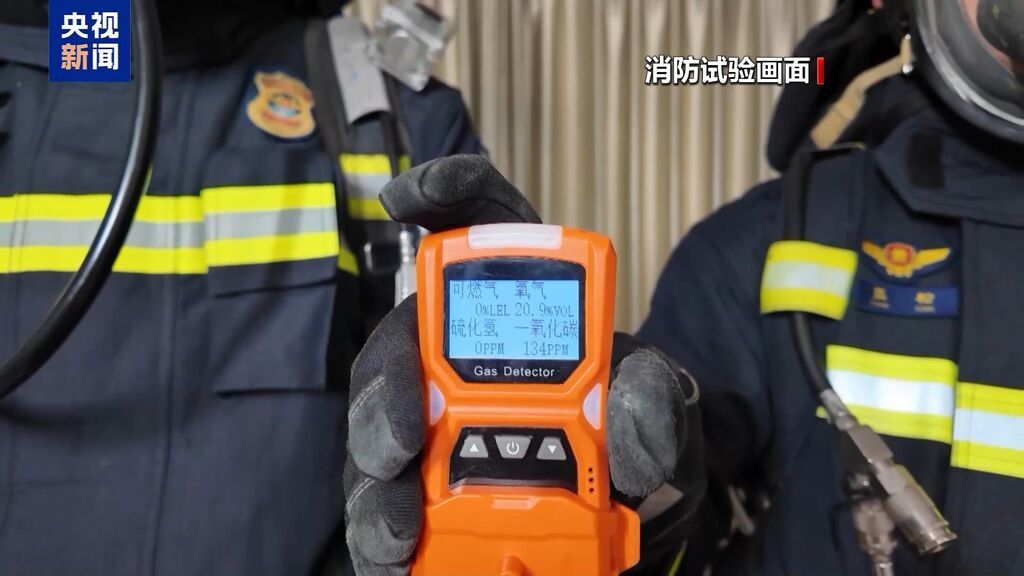 在密闭空间内,消防人员开展燃烧试验,随着煤炭被点燃,有毒气体监测仪上的数字开始变化。仅仅2分钟,室内一氧化碳浓度就突破100ppm;5分钟不到,数值直接飙升到500ppm,已经远超人体可承受的安全极限。