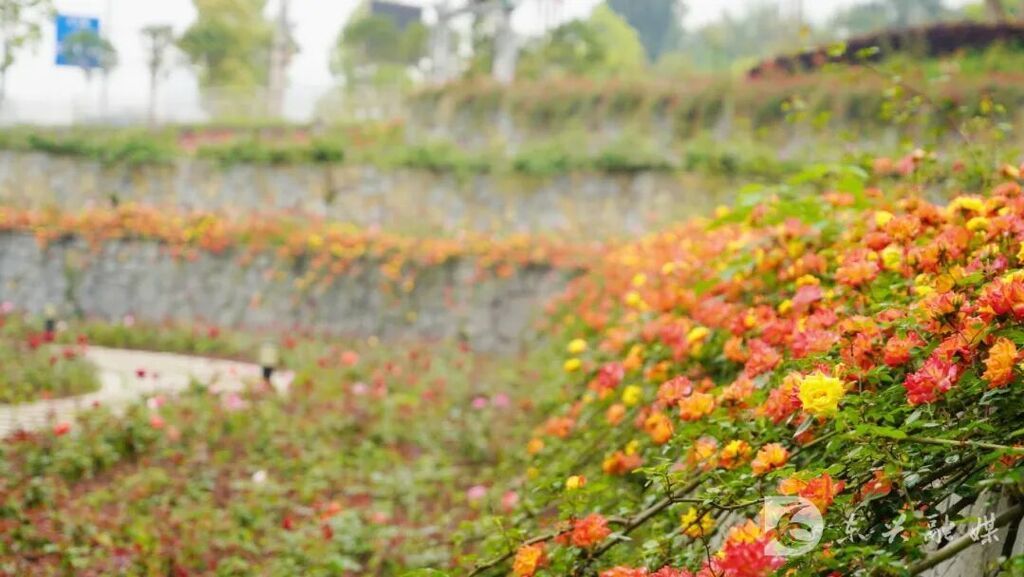 4月13日,走进五星湿地公园,成片的月季花竞相绽放,花型饱满、色泽鲜亮,或含苞待放、娇羞欲滴,或肆意盛放、风姿绰约,与园内的绿地、步道相映成趣,整个公园都被这片绚烂花海包裹,处处洋溢着生机与活力。