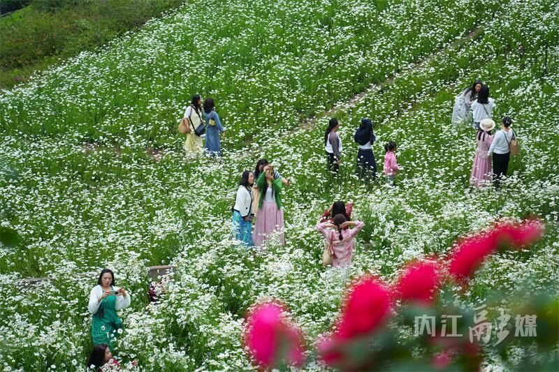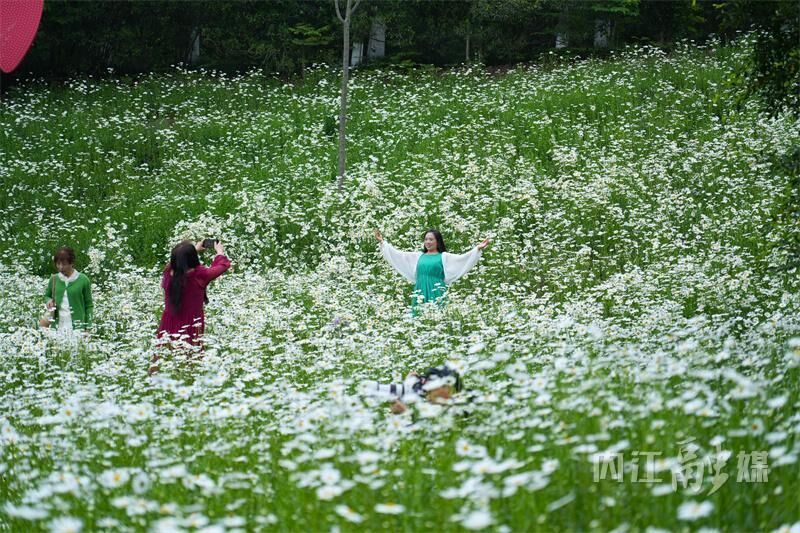 春和景明,繁花缀城。近日,内江市市中区塔山公园大片大滨菊悄然绽放,成为春日里清新雅致的风景线,吸引众多市民前来赏花拍照。