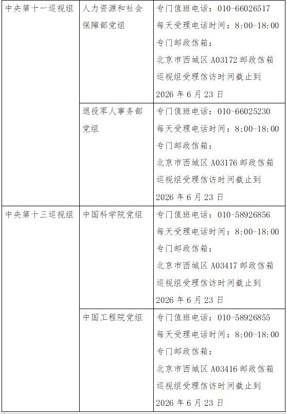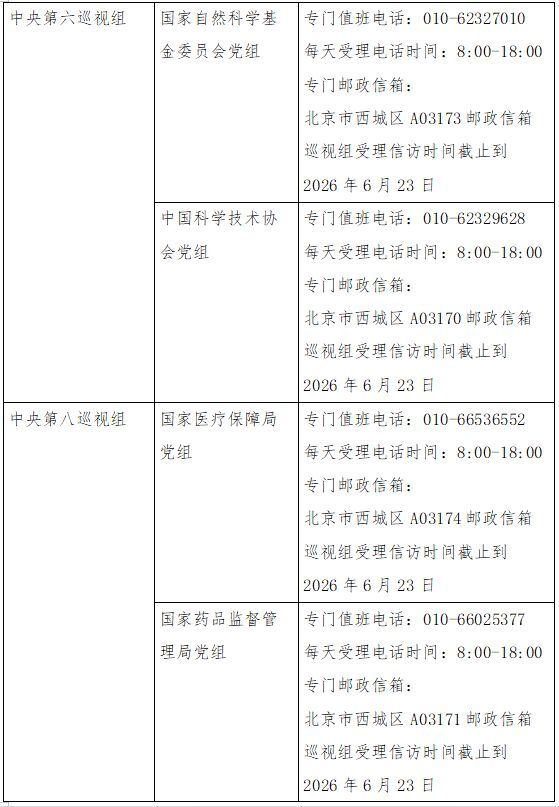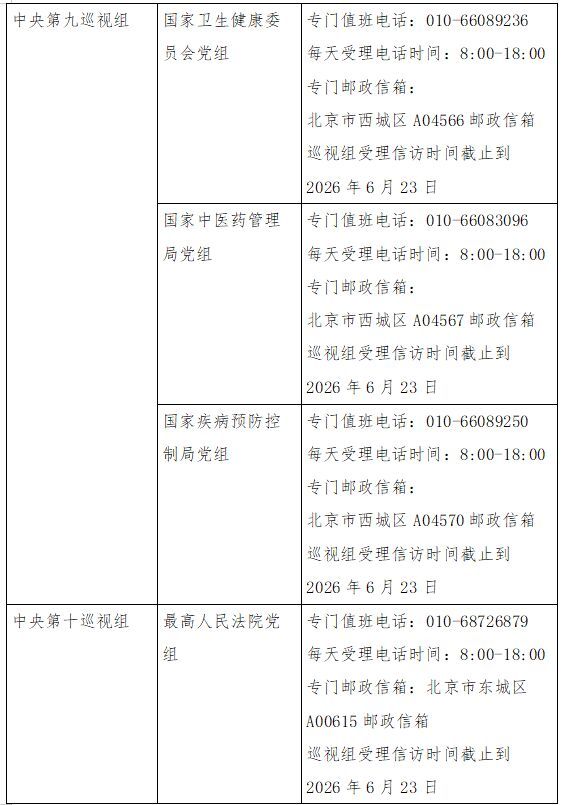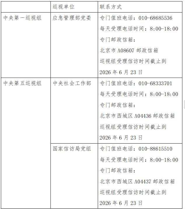 已进驻中央巡视组联络方式:
