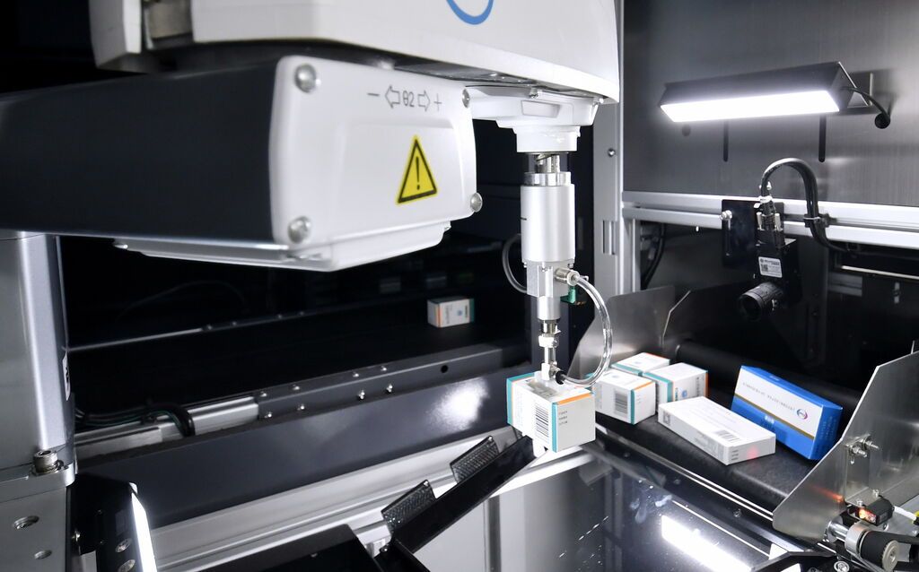 2026年2月3日,北京一家医院药房内的药品分拣机器人在工作中。新华社记者 李欣 摄