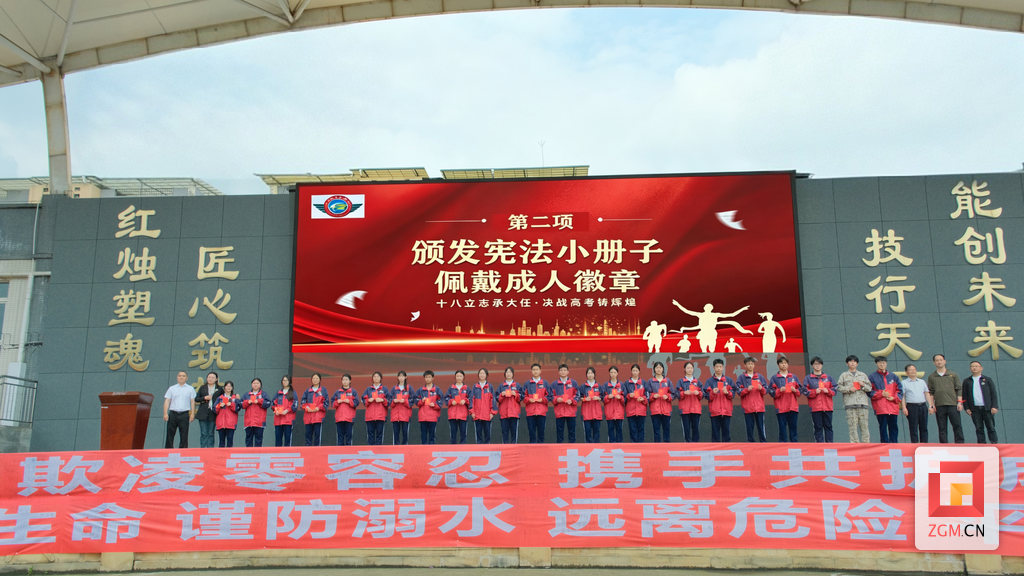 大会在庄严的国歌声中拉开帷幕。学校相关负责人致辞,向全体迈入成年的学子致以热烈祝贺,寄语同学们成人成才、顶天立地,以永不言弃的势头,全力冲刺成人后的第一场人生大考——高考。
