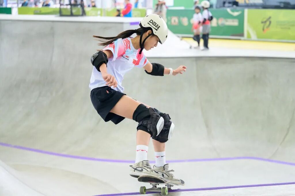 中国队豪取6金,包揽碗池全部4金。12岁的山东小将孟令妍夺得女子碗池冠军,赛后直言:“我给自己打90分,目标是参加洛杉矶奥运会!”陈烨在男子碗池中反超夺冠,引爆全场。街式项目中,韩国选手李俊胜、申智燏分获男女冠军,中国队王腾赫、朱沅铃收获亚军。“滑板就是自由,就是挑战自己。”一位泰国少年选手笑着说,膝盖上贴着创可贴,眼里全是光。