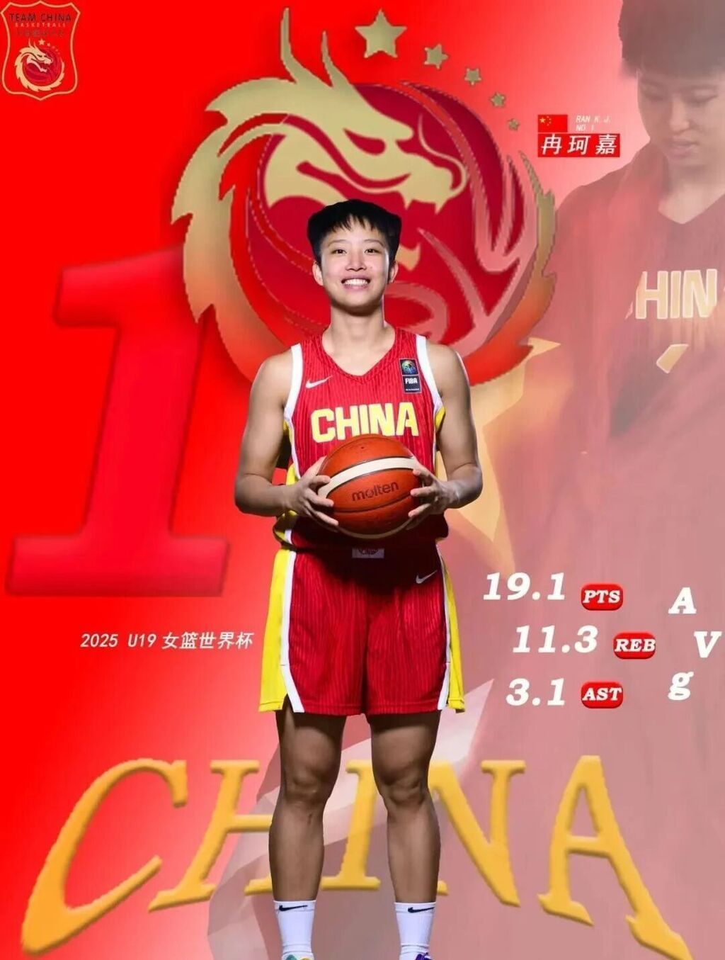 2025年U19女篮世界杯上,冉珂嘉场均拿下19.1分、11.3个篮板、3.1次助攻,入选FIBA官方“六大世界杯新星”。同年全运会U22组决赛,她贡献18分12个篮板,助力四川女篮战胜浙江队夺冠,成功入选中国女篮国家队集训名单。