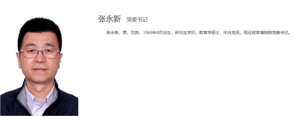 近日,故宫博物院官网“院领导”栏目更新显示,张永新已任故宫博物院党委书记。