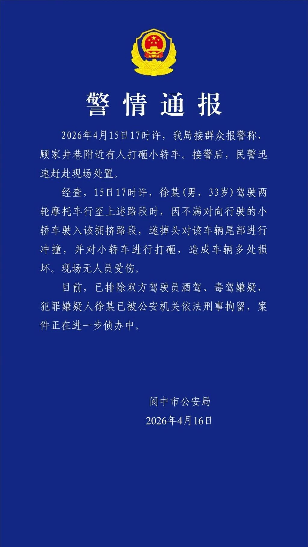 经查,15日17时许,徐某(男,33岁)驾驶两轮摩托车行至上述路段时,因不满对向行驶的小轿车驶入该拥挤路段,遂掉头对该车辆尾部进行冲撞,并对小轿车进行打砸,造成车辆多处损坏。现场无人员受伤。