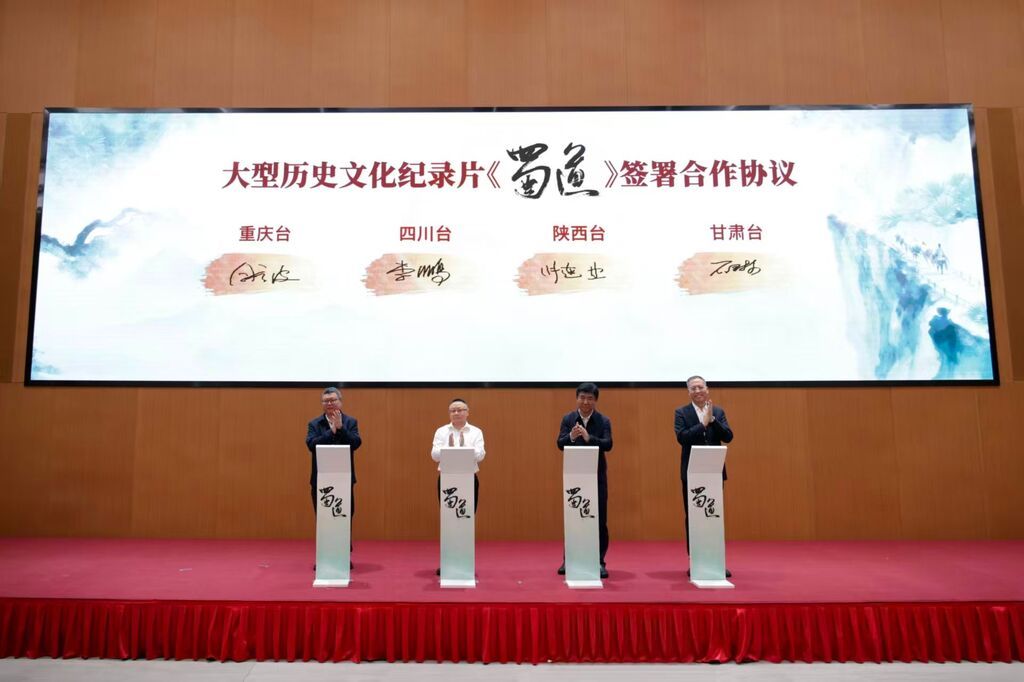 4月16日,由四川广播电视台牵头,联合陕西广电融媒体集团(台)、甘肃省广播电视总台、重庆广播电视集团(总台)共同出品的大型历史文化纪录片《蜀道》在成都开机。中共四川省委宣传部副部长,省广电局党组书记、局长李晓骏在致辞时表示,四川作为项目发起方,将全力推进项目拍摄制作,期待主创团队以匠心打磨精品,把蜀道的厚重底蕴与时代价值呈现给全国观众。开机仪式上,四川、陕西、甘肃、重庆四省市台现场签署项目联合出品制作合作协议,并共拓“蜀道长卷”,为纪录片拍摄按下启动键。