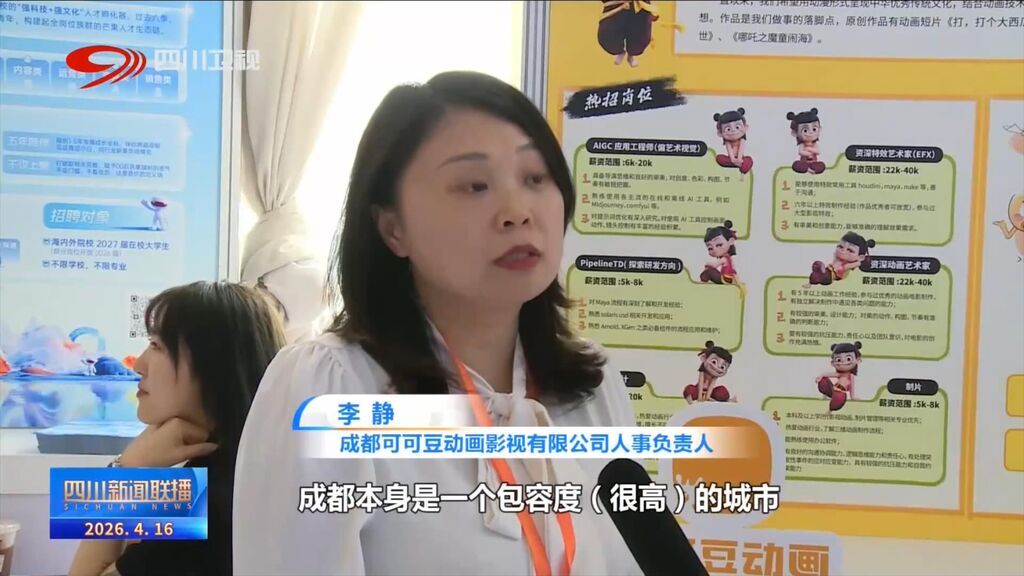 成都可可豆动画影视有限公司人事负责人 李静:成都本身是一个包容度(很高)的城市,而且这两年发展得很快,我们也跟各大院校进行合作过,所以我们希望在这个(AI领域)岗位能招到合适的人。