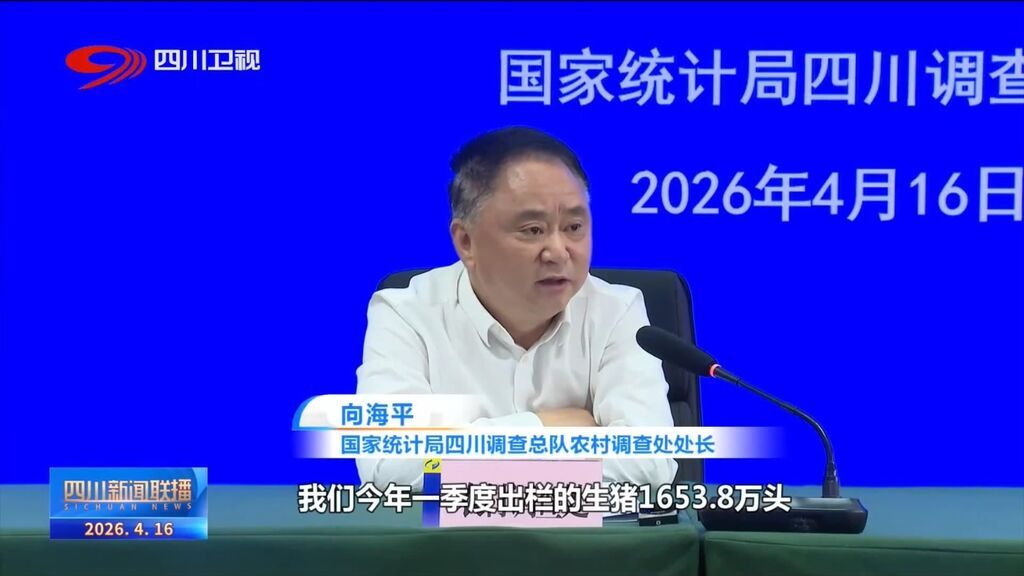 国家统计局四川调查总队农村调查处处长 向海平:我们今年一季度出栏的生猪1653.8万头,同比增长了4.6%,高于全国水平,肉产量我们增加了7.4%,第一说明我们猪的出栏量大了,第二说明我们猪的体量体重大了,另外一个方面就是生猪产能调整,那么从去年到现在,它调整期还没过,四川的能繁母猪还有362.4万头,还(同比)增长了0.9%。