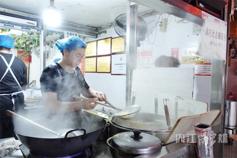 “内江人吃面,不是非得红油。”廖勇一边搅汤一边说。他的动作不快不慢,二十八年练出来的节奏。