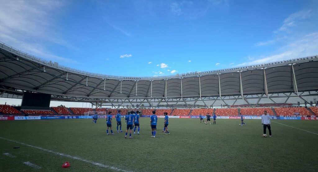 4月17日下午,记者来到乐山市奥体中心,乐山味道非常队全体队员在教练的带领下,正进行着最后的战术磨合与定位球演练。从全场逼抢到快速反击的细节打磨,能看出球队对本场德比之战准备得相当充分。