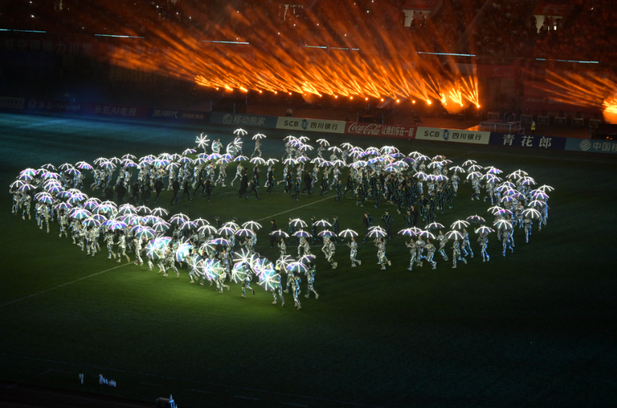 在守根的定力之上,是川人深入骨髓的创新锐气。“川超”舞台上的文化表达,从来不是对传统的生硬复刻,更不是对潮流的盲目跟风,而是“守根不守旧、创新不忘本”的敢破敢立,这恰恰是川人“敢为天下先”的性格,在文化领域最生动的注脚。本轮展演里,达州主场的三汇彩亭经过创新改版融入大型舞台,让这项国家级非遗在现代赛场焕发新生;乐山主场的《峨眉山月》歌用四川清音重新谱曲,让李白笔下千年前的诗意,有了当代人能共情的现代表达;凉山主场的《金江鼓乐》,把传统非遗鼓阵与实战拳法深度融合,让古老的民间艺术有了直击人心的硬核力量;绵阳主场的灯光秀,把科技城的科创实力与城市烟火气完美相融,让城市文化有了充满未来感的表达。这份在传承中创新、在坚守中突破的锐气,是“川超”新大众文艺最动人的活力,也是川人精神永远鲜活的密码。