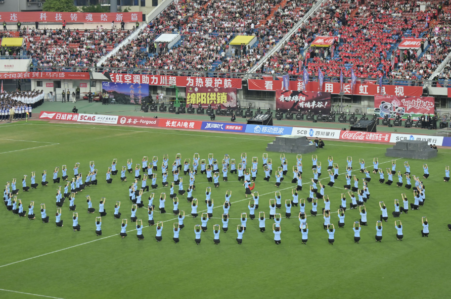 这份精神的第一重底色,是川人刻在血脉里的守根定力。“川超”的文艺展演,从一开始就跳出了“赛事暖场”的功利性定位,把本土文脉的传承当成了核心表达。本轮四大主场的每一段表演,都牢牢扎根在巴蜀大地的文化根脉之上,每一个音符、每一个舞步,都有实打实的本土文化底气。达州主场1300多名学子演绎的《锦绣盛世》,从賨人战士的战旗方阵,到国家级非遗三汇彩亭的灵动亮相,从头到尾都在溯源巴蜀賨族的千年人文根脉;凉山主场的《金江鼓乐》与山鹰组合的《走出大凉山》,把金沙江畔的非遗底蕴与彝族人民的奋进故事,唱进了万人赛场;乐山主场的四川清音《峨眉山月》、峨眉武术与白蛇传说的演绎,把千年峨眉的文化IP,变成了全场可感的诗意;绵阳主场 1632 名学子演绎的《少年中国》,以五四精神为内核,在情景演绎与深情朗诵的层层递进中,用振聋发聩的齐声呐喊 “请党放心,强国有我” 完成情感爆发,让百年前五四先辈的青春誓言与此刻绿茵场上的少年呐喊完成了跨越时空的呼应,让刻进血脉的红色信仰,在巴蜀少年的声声呐喊里完成了最滚烫的青春接续。川人从来都懂,文脉是根,根不丢,魂就在。这份对本土文化的敬畏与坚守,是“川超”新大众文艺最核心的底气,也是川人精神最坚实的根基。