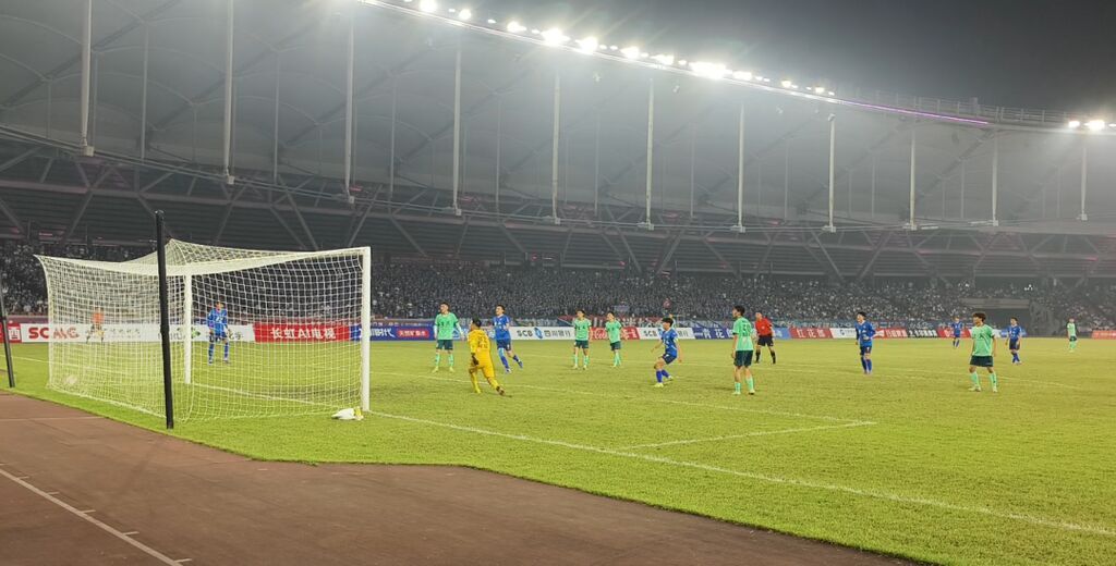比赛伊始,主场作战的乐山味道非常队迅速进入状态,凭借主场优势主动发起进攻,攻防节奏紧凑有序。第14分钟,乐山队抓住角球机会,5号球员阿布都沙拉木·艾尼瓦尔头球破门,打破场上僵局,乐山队1:0取得领先,现场气氛瞬间被推向高潮。领先后的乐山队并未松懈,继续加强攻势,多次创造有威胁的射门机会,宜宾队则立足防守,伺机寻找反击突破口。