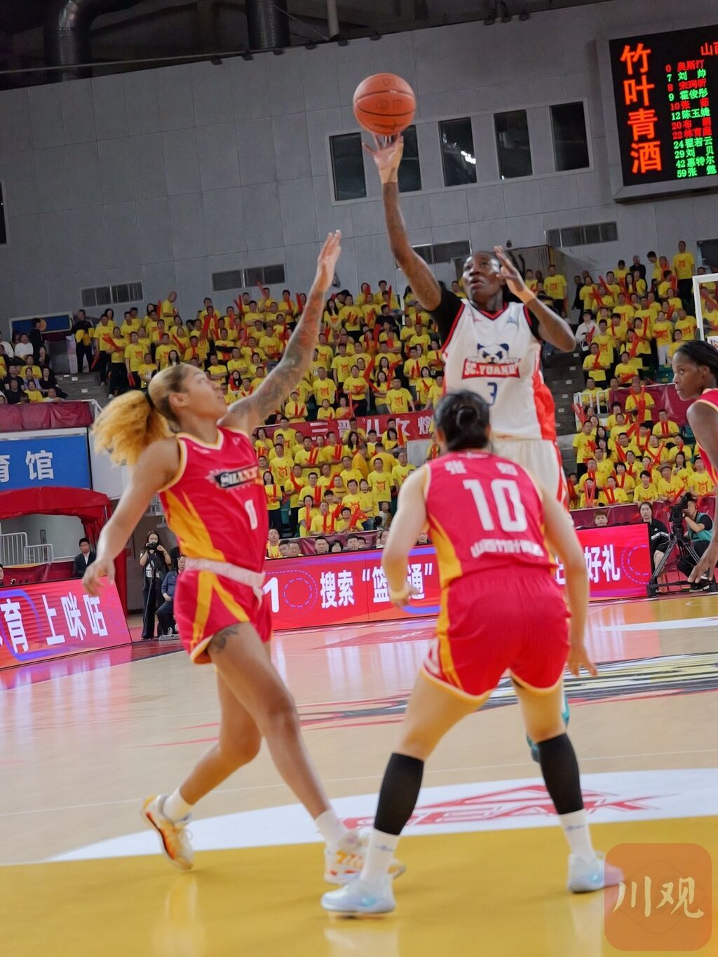末节赛场,四川女篮始终保持沉稳态势,稳步扩大领先优势,一度将分差扩大至20分以上。尽管山西女篮在外线发起反扑,但四川女篮队员们沉着应战,成功顶住对手一波又一波的冲击,守住胜果。