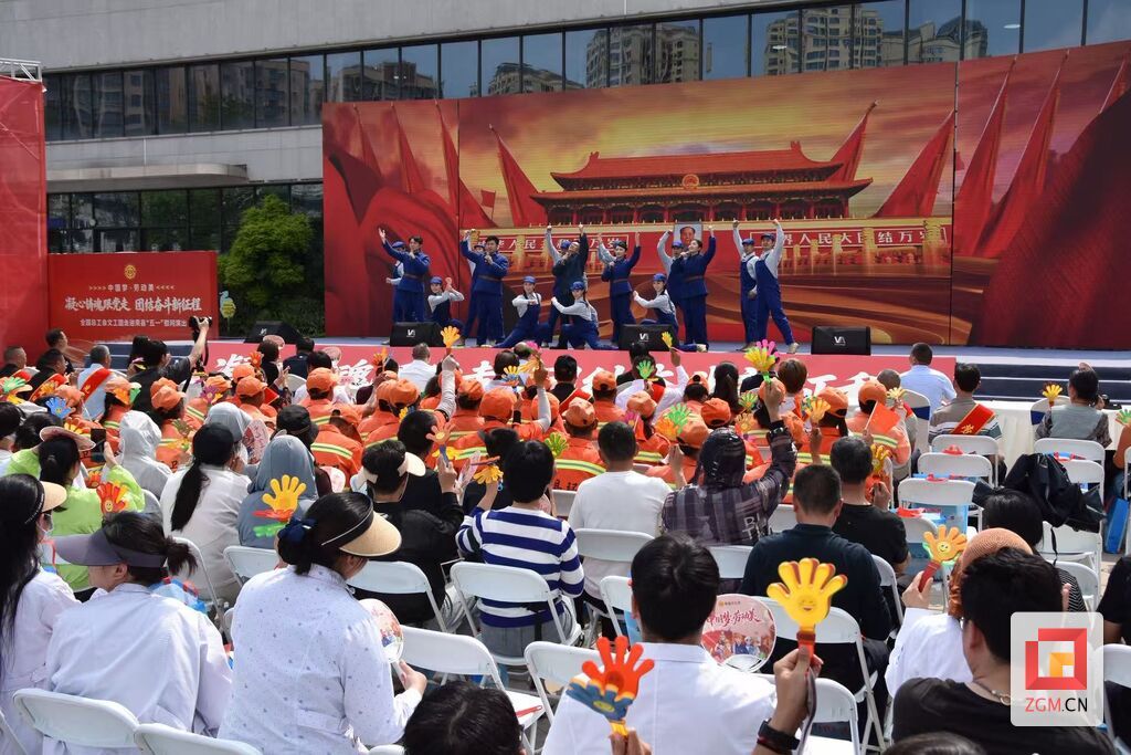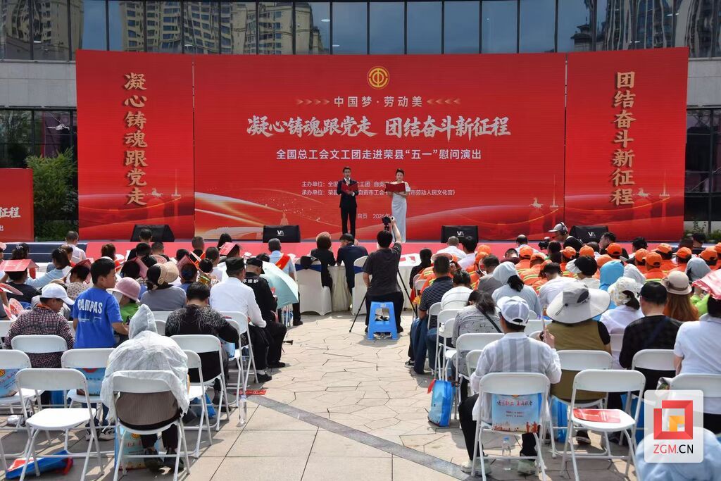 歌舞颂奋斗,匠心暖荣州。4月19日下午,荣县市民健身中心广场歌声嘹亮、激情飞扬。“中国梦·劳动美——凝心铸魂跟党走 团结奋斗新征程”全国总工会文工团走进荣县“五一”慰问演出在这里火热上演。来自全县各条战线的劳动模范、先进工作者、五一劳动奖章获得者、荣州工匠代表、一线职工、新就业形态劳动者代表等近500人齐聚一堂,共享这场文化盛宴。