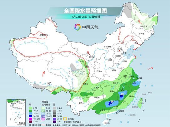 具体来看,中央气象台预计,今天,内蒙古东北部、黑龙江西北部、新疆沿天山西段和南疆高海拔山区、西藏北部和东部、青海、甘肃西南部、川西高原等地部分地区有小到中雪或雨夹雪,其中,内蒙古东北部、黑龙江西北部等地部分地区有中到大雪,黑龙江西北部局地暴雪;西南地区东南部、江南中西部、华南中北部、四川盆地东北部、陕西西南部、西藏东南部、黑龙江东北部等地部分地区有中到大雨,其中,湖南中南部、江西西部、广西北部等地部分地区有暴雨或大暴雨。