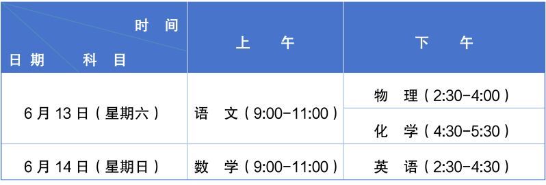 6月:语文、数学、英语、物理和化学考试,具体时间👇