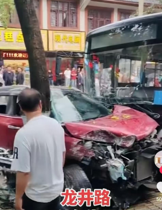 ·云南昭通一公交车撞上路边汽车,官方:公交司机操作不当所致。