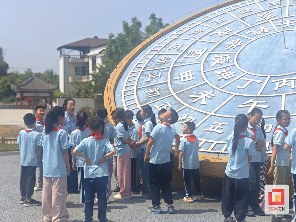 依托橘创空间这一特色阵地,活动还将课堂延伸到乡土文化和特色产业现场。围绕富顺县柑橘产业发展情况,杨梅向孩子们介绍了家乡特色农业的基本情况和发展成果,让大家在实地感知中增进对地方产业的了解。结合花园村文化符号“铁牛拖拉机”,她向孩子们讲述其来历及背后蕴含的奋斗精神、实干品格;针对场地门口的日晷装置,则从传统文化和时间观念切入,帮助孩子们理解其中所承载的文化内涵。一个个贴近生活、贴近乡土的讲解内容,让现场阅读活动更加可感可知,也让孩子们对家乡有了更具体、更鲜活的认识。