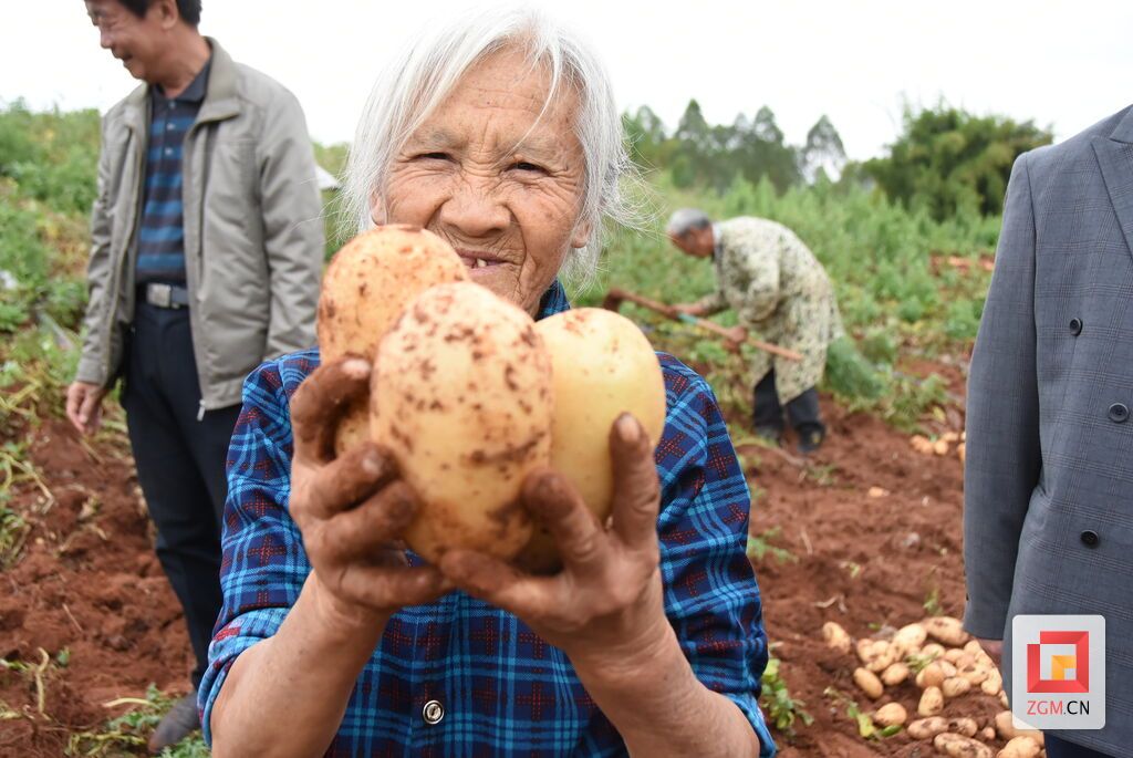 作为原荣县种植业服务中心农技站站长,但旭平退休后加入荣县老科协,一心扑在马铃薯高产技术攻关中。去年,他在乐德镇流转100亩旱地,探索“地膜覆盖+滴灌保水”的科学种植模式。从选种、播种到田间管理,他全程扎根地头,记录下每一个生长阶段的数据。“管理得好的地块亩产7000斤以上,差一点的也有5000斤左右。”看着地里忙碌的村民和来回穿梭的收获机械,但旭平难掩笑意,“机械化收获大大节约了人工成本,这几天每天都有10多个村民帮忙,已经收了近30亩。”