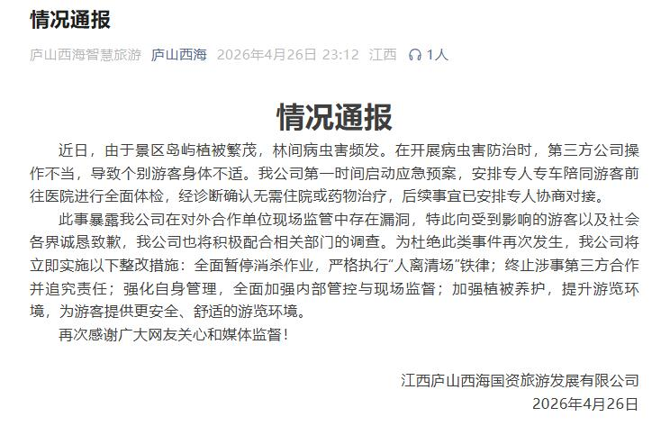 ·游客投诉称遭无人机喷药,庐山西海景区通报。
