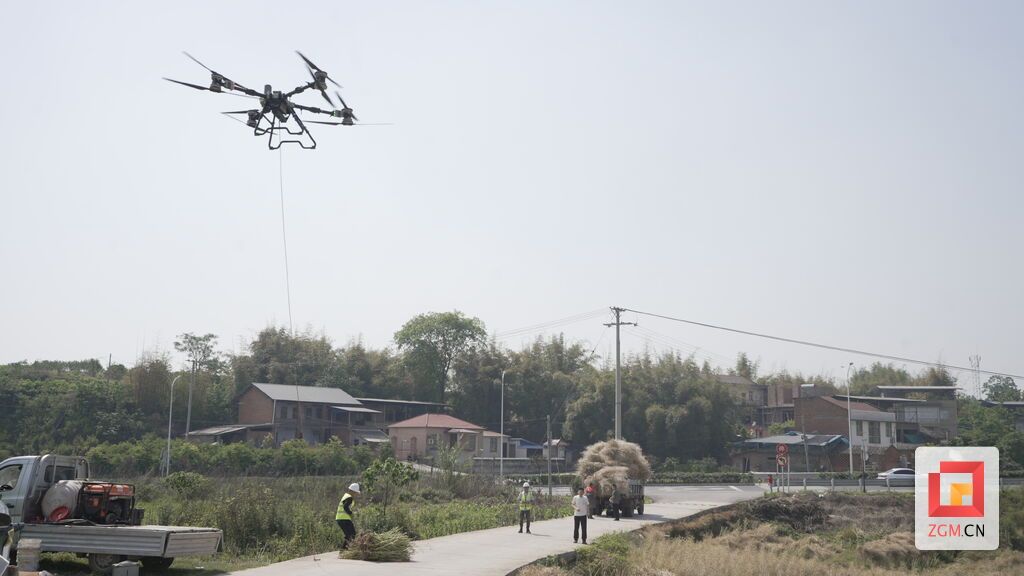 4月25日,春日的荣县乡村,油菜丰收收尾,秸秆处置工作同步推进。旭阳镇两木村田间地头呈现出一幅高效、绿色的秸秆治理图景:大型载重无人机悬停半空,稳稳吊运着捆扎好的油菜秸秆向公路边临时收集点行进——这是荣县以旭阳镇两木村为实践阵地,探索川南丘陵地区秸秆综合治理的生动缩影,也是当地落实秸秆禁烧与综合利用政策、推动农业绿色低碳发展的鲜活实践。