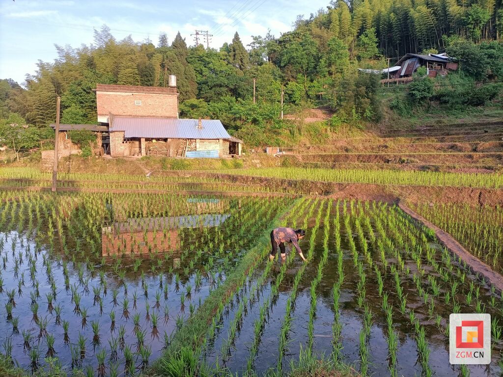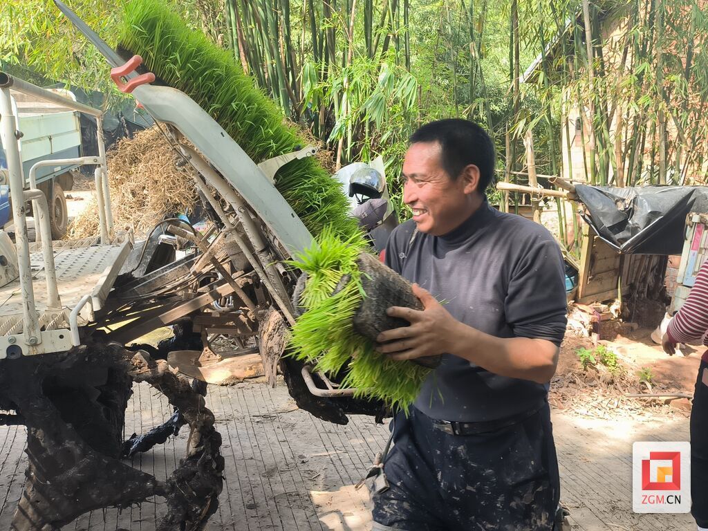 4月24日,荣县东佳镇石庄村万亩粮油示范区的水田中,一台高速插秧机正来回穿梭,嫩绿的秧苗随着机器的行进整齐“站”入水田。田坎上,种粮大户冯跃金双手插兜,看着这一幕笑得合不拢嘴:“以前人工插秧,一人一天最多一亩,腰杆都累弯了;现在机器在田里干,我在田坎上看,一天轻轻松松三四十亩!”