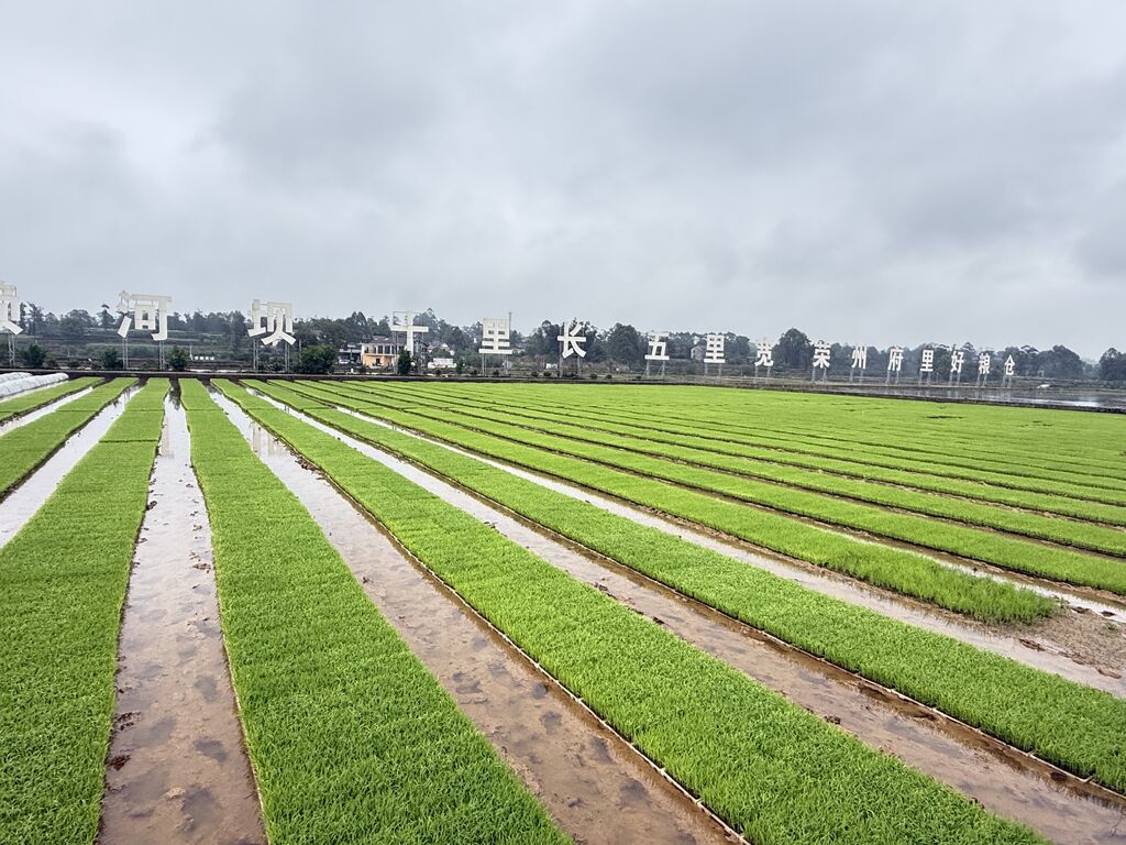 在东佳镇,适合丘陵缺水地块的旱育秧技术也在同步推广。在一处苗床上,8亩旱育秧苗叶片挺拔、茎秆粗壮。“旱育秧根系活力强,是荣县推进‘中稻+再生稻’产业发展的重要举措,一季收两茬,亩产可上千斤,农户增收更有底气。”代华超介绍。
