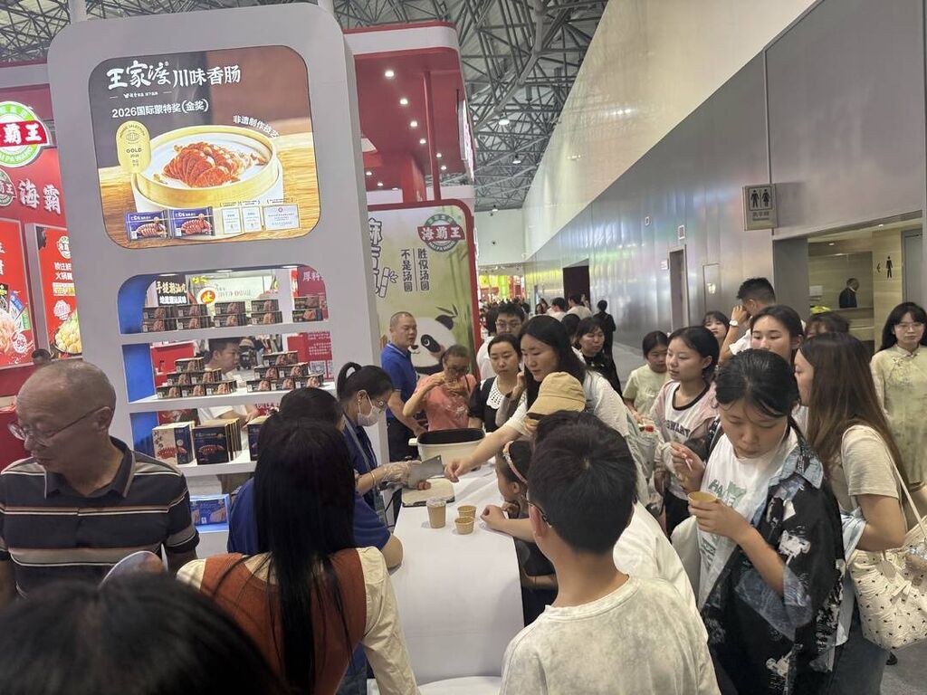 4月25日,在泡博会现场,吉香居、老坛子、李记泡菜等展位前,站满了前来问询和品尝的食客、参展商。