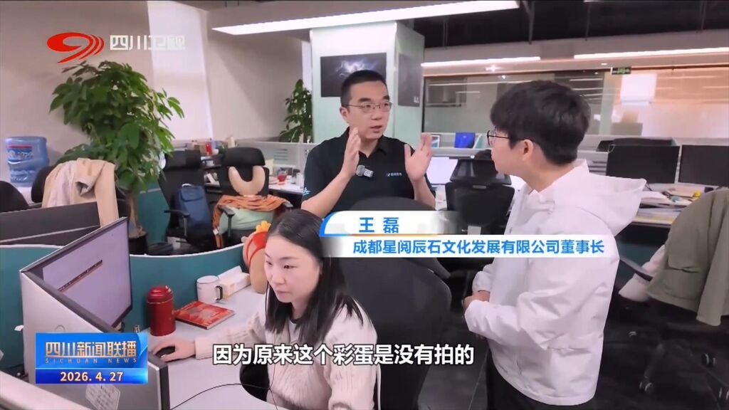 成都星阅辰石文化发展有限公司董事长 王磊:在彩蛋这个环节,因为原来彩蛋是没有拍的,但是我们要讲很多里面的一些背景设计。这东西我们怎么办呢?我们直接就用AIGC去做。