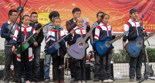 乐队为留守儿童捐赠吉他